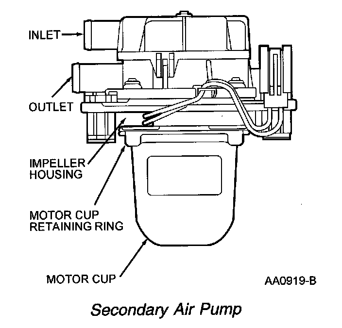 The secondary AIR pump provides pressurized air to the secondary AIR system. The secondary AIR pump functions independently of RPM and is controlled by the PCM. The secondary AIR pump is only used for short periods of time. Delivery of air is dependent on the amount of system backpressure and system voltage. The secondary AIR pump draws dry filtered air from the intake air system downstream of the MAF/IAT sensor.