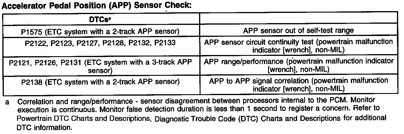Accelerator Pedal Position (APP) Sensor Check: