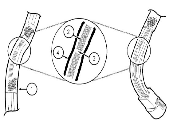 13. Use shielded heat gun to heat the repaired area until adhesive flows out of both ends of the heat shrink tubing.