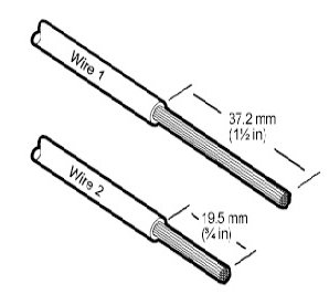 2. Strip 6.35mm (1/4 in) of insulation from each wire end, taking care not to nick or cut wire strands.