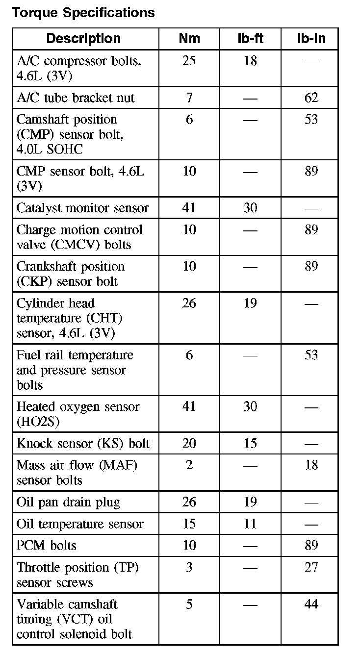 Torque Specifications: