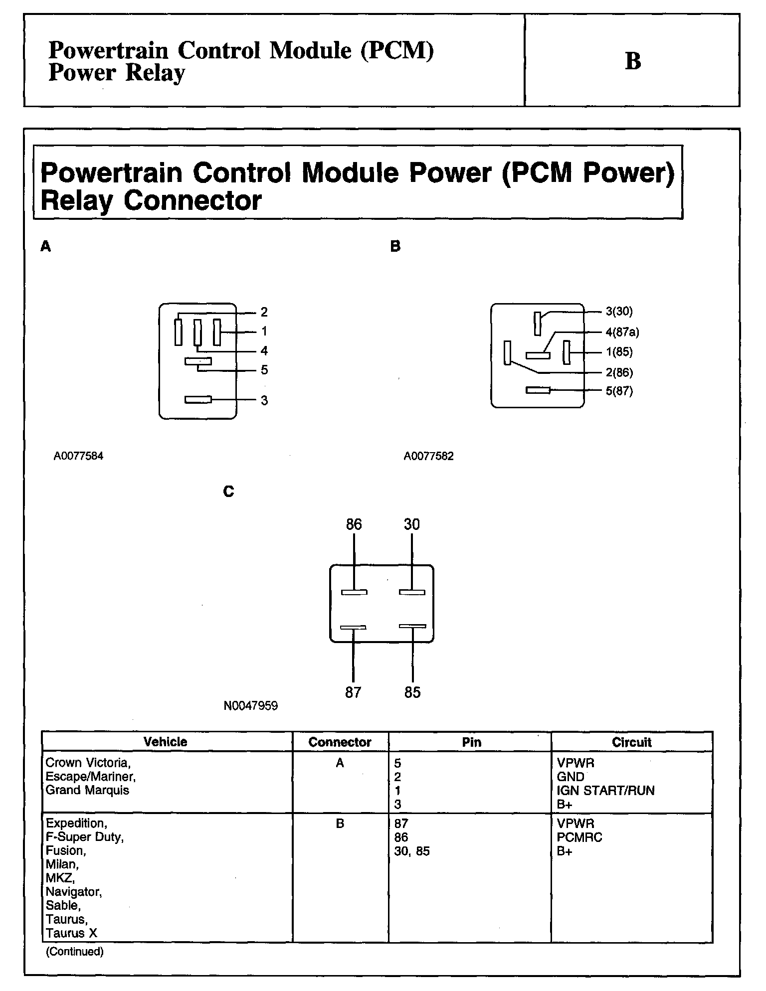 Powertrain Control Module Power (PCM Power) Relay Connector: