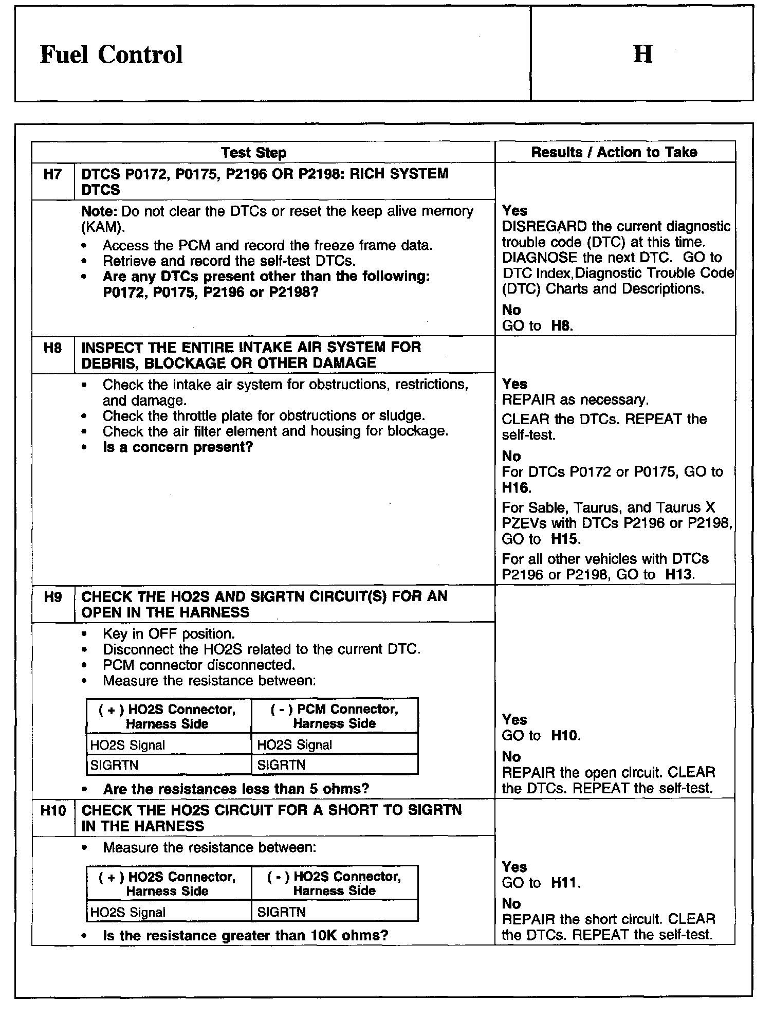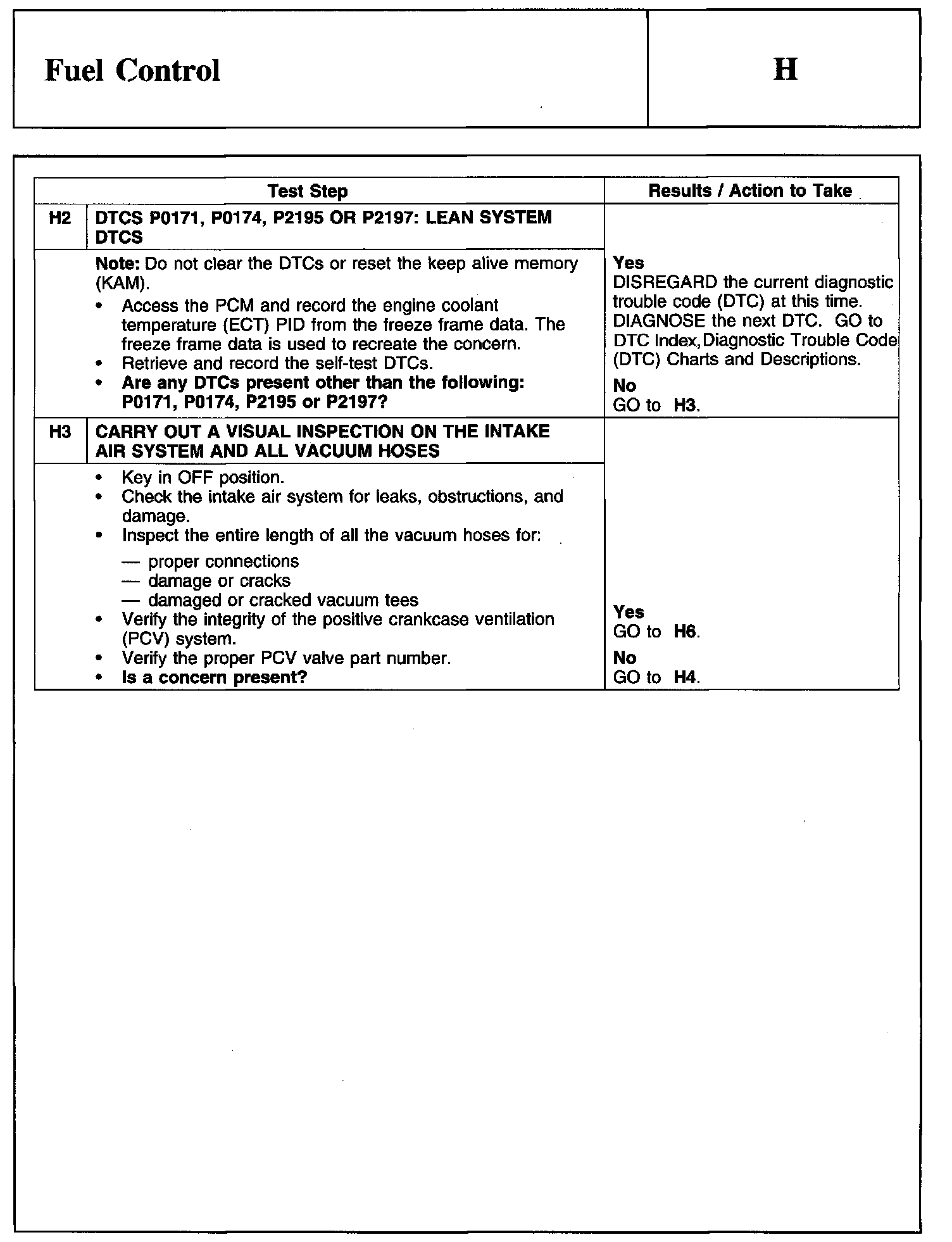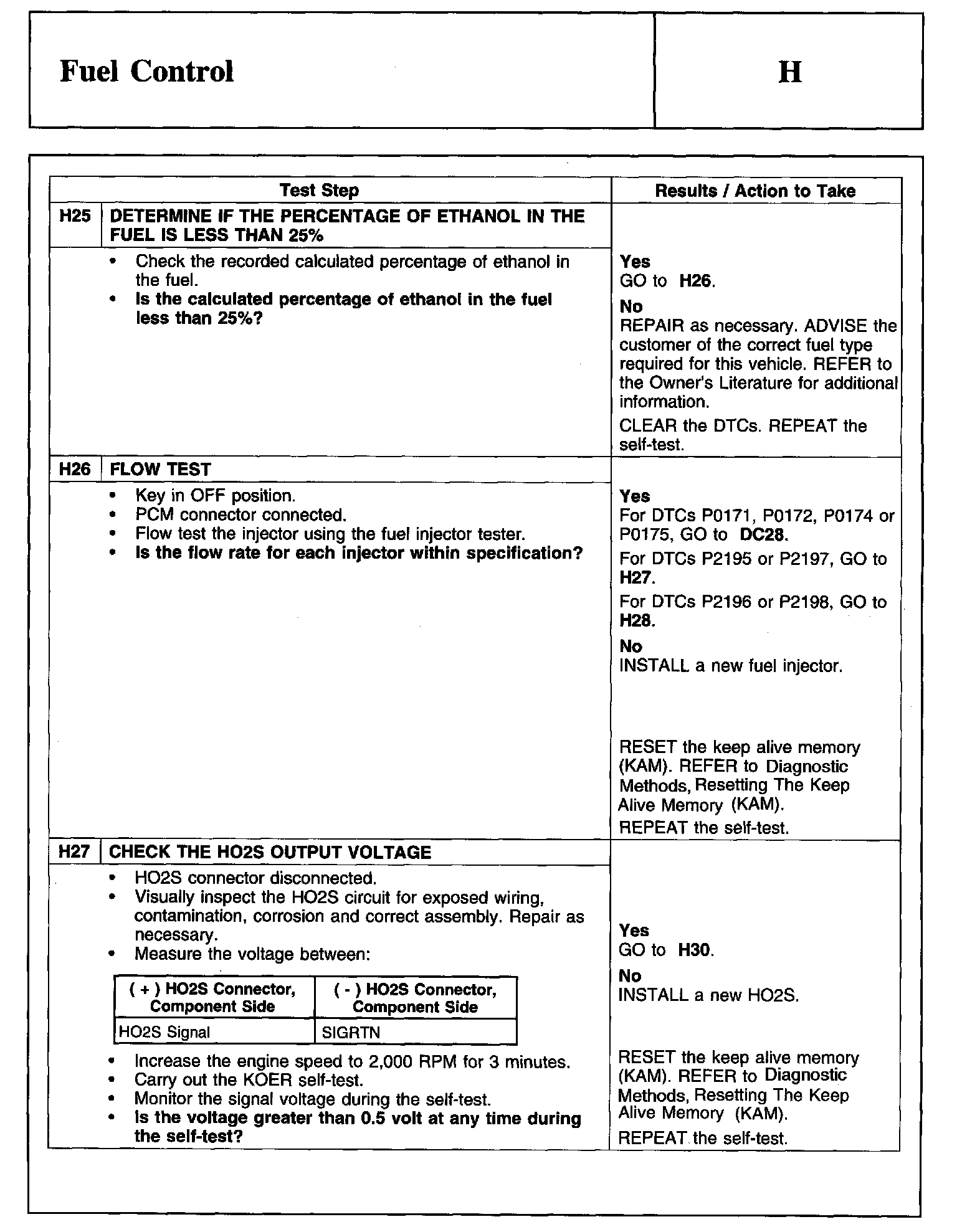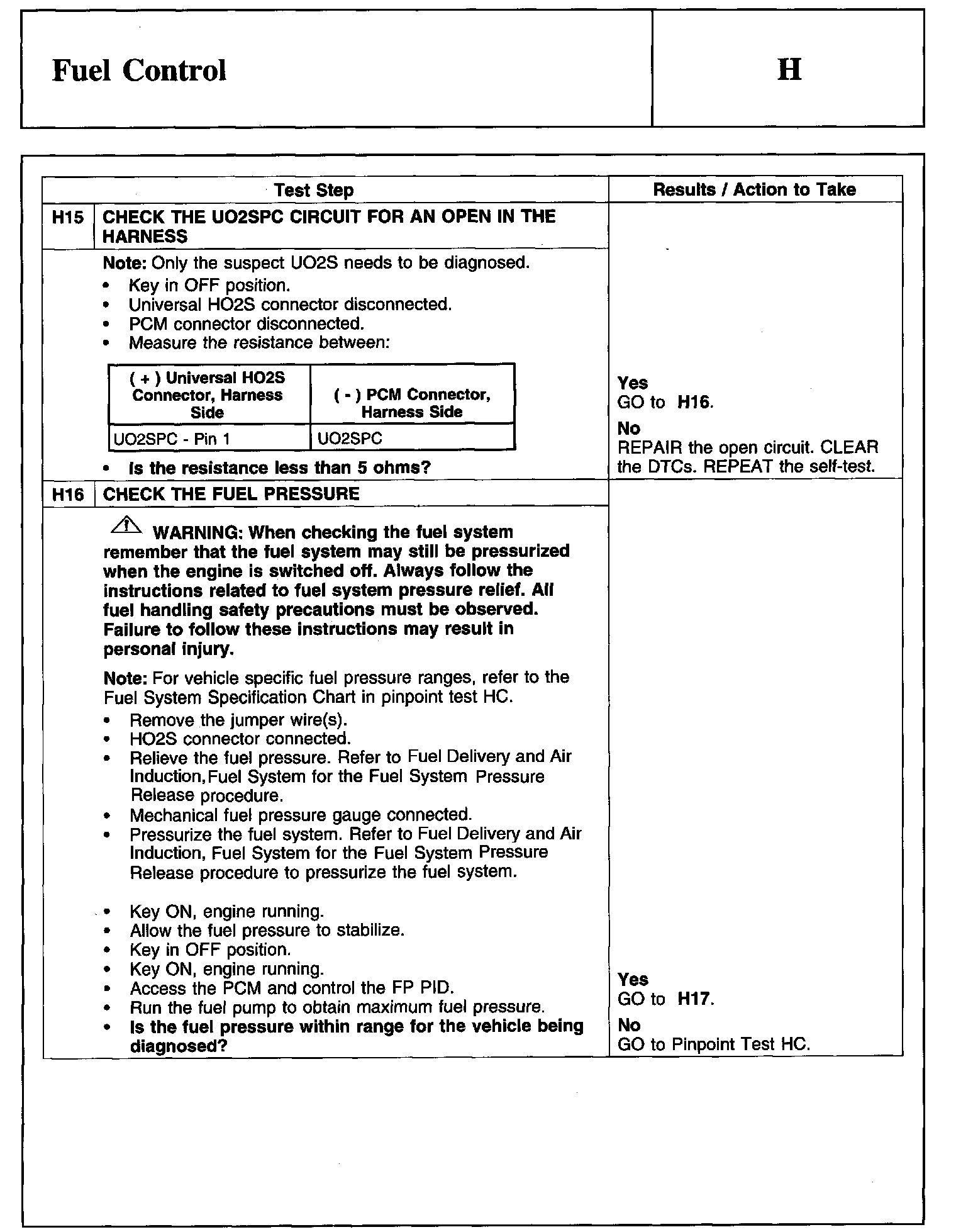 PINPOINT TEST H: FUEL CONTROLWarnings And Schematic: