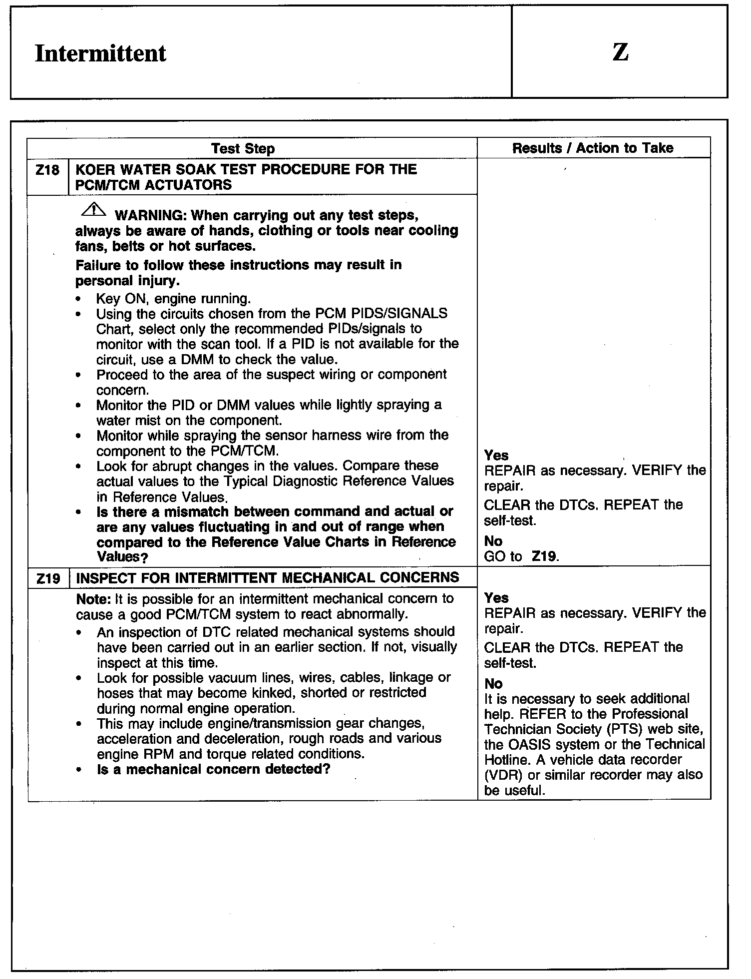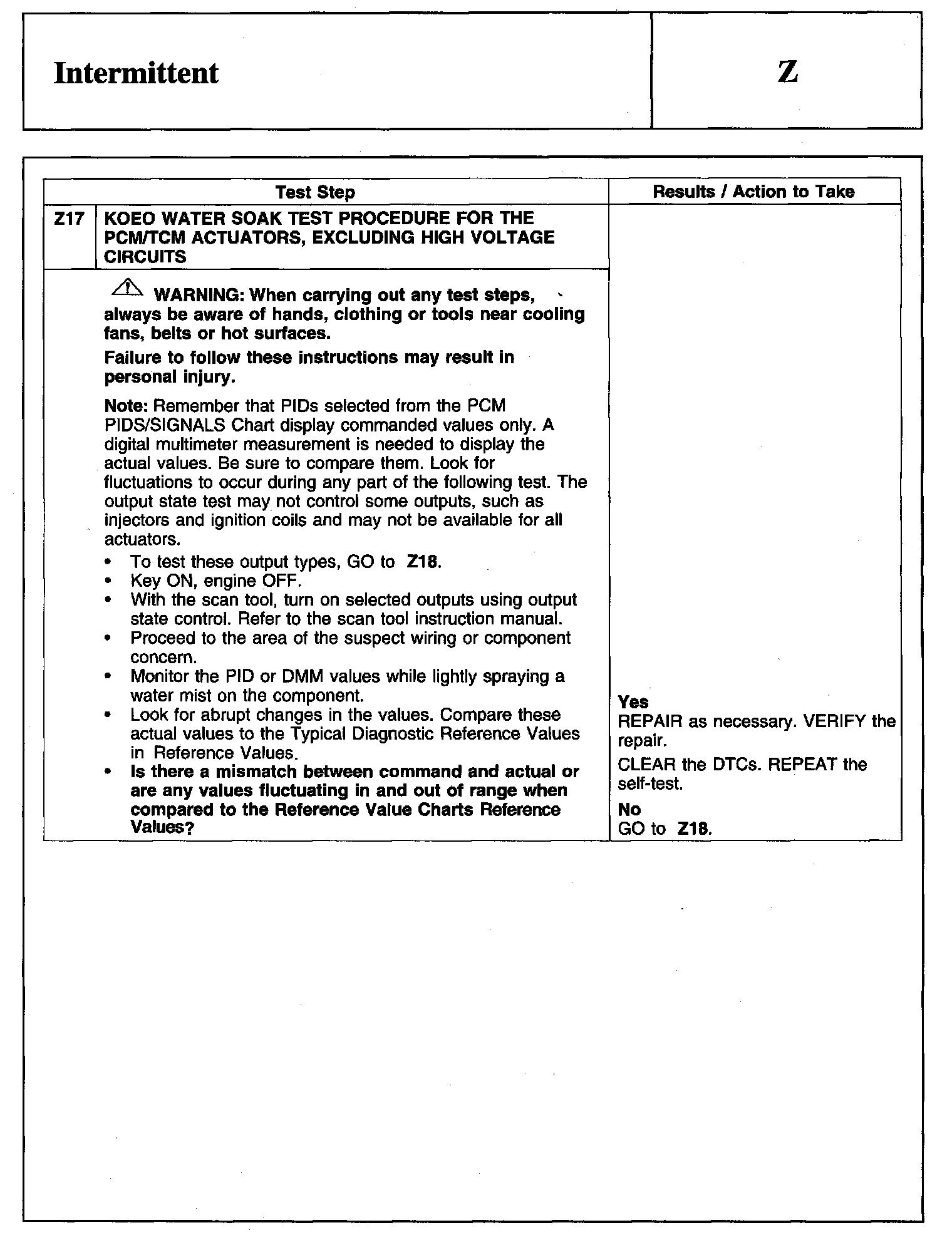Test Z: Intermittent