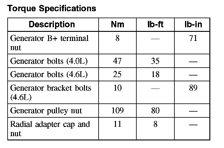 Torque Specifications: