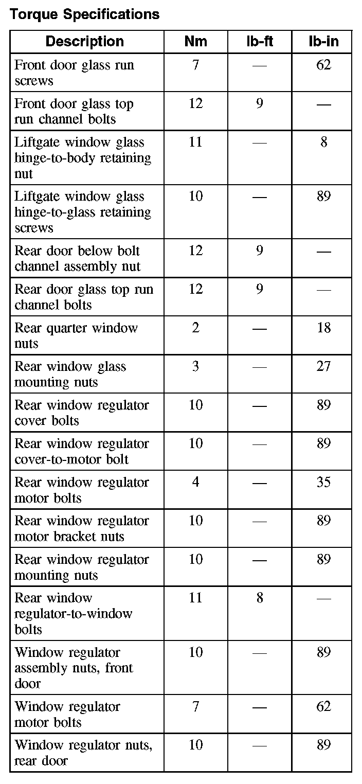 Torque Specifications: