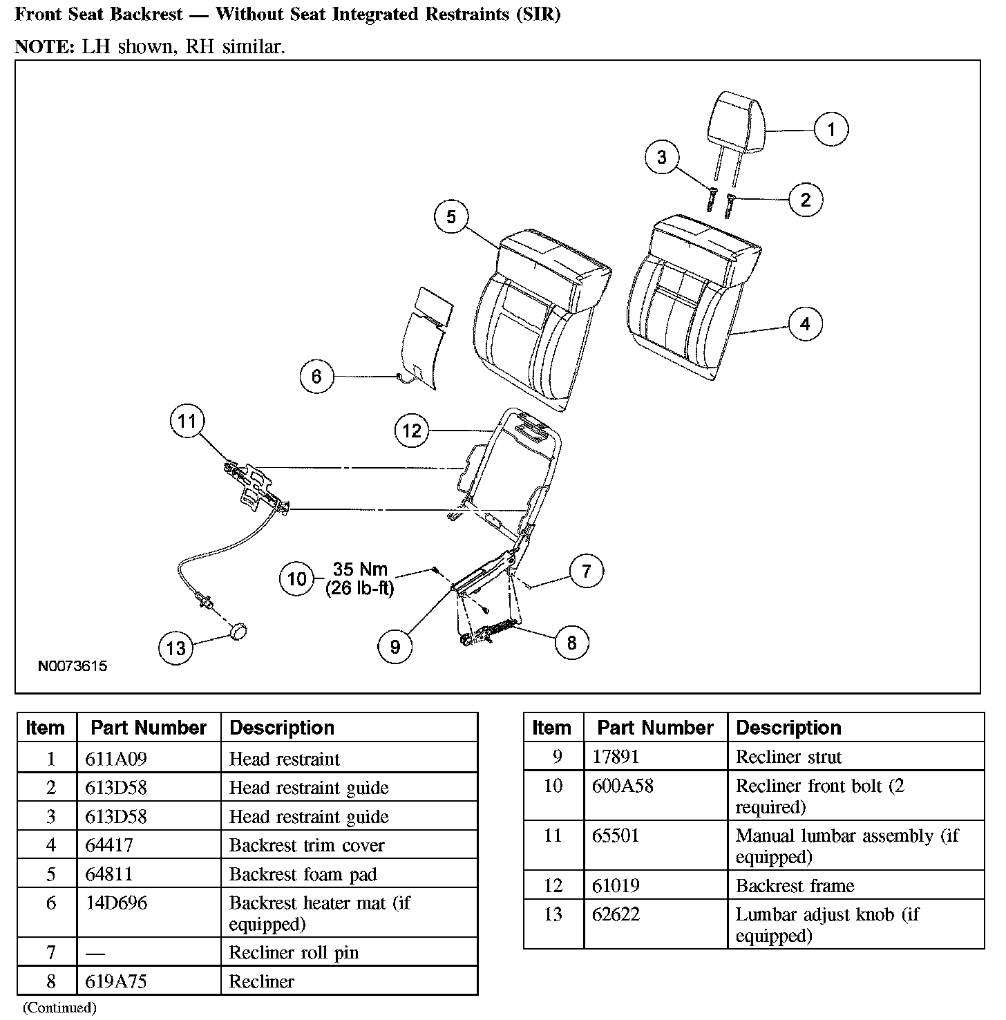 Front Seat Backrest - Without Seat Integrated Restraints (SIR):