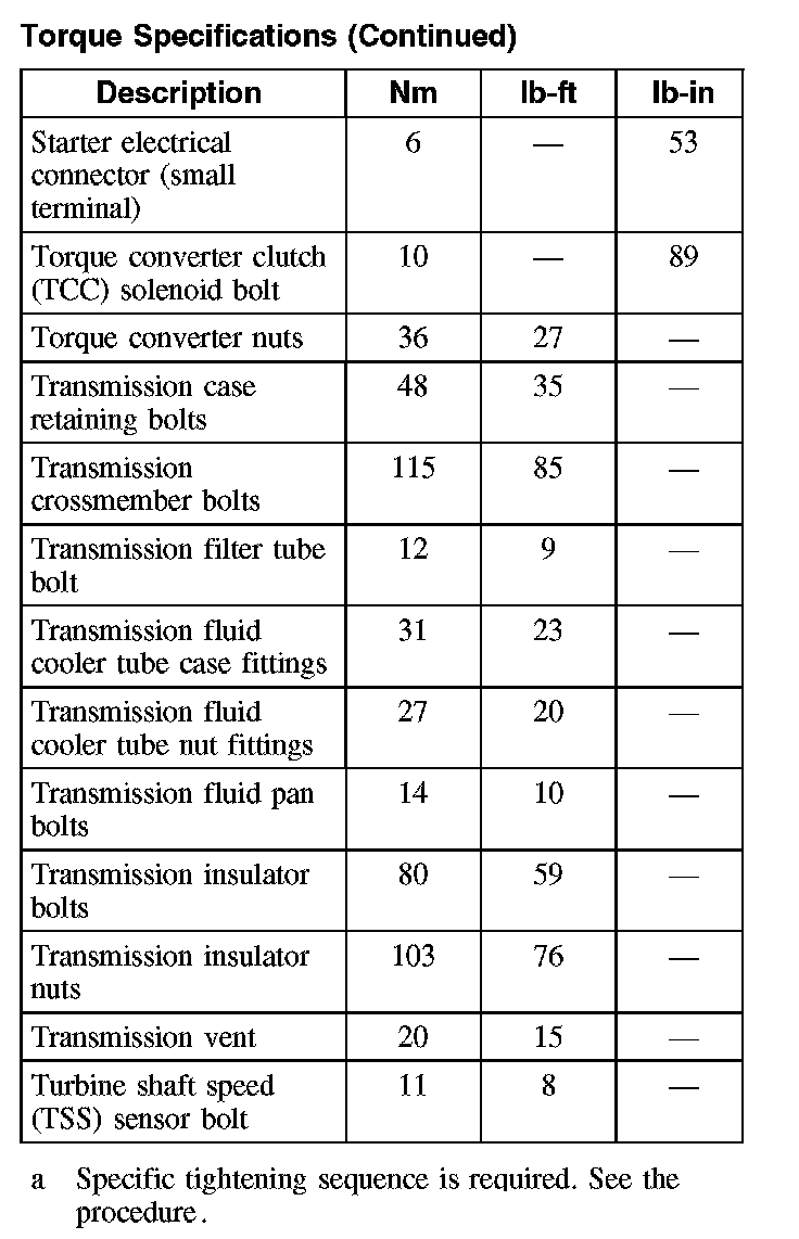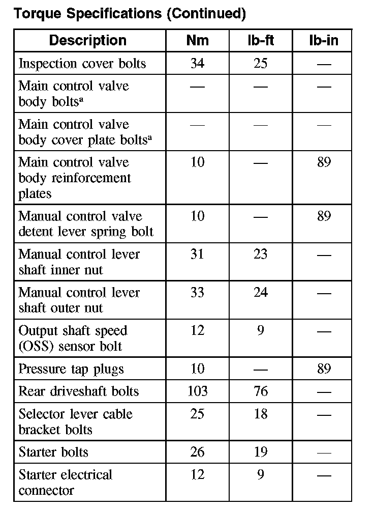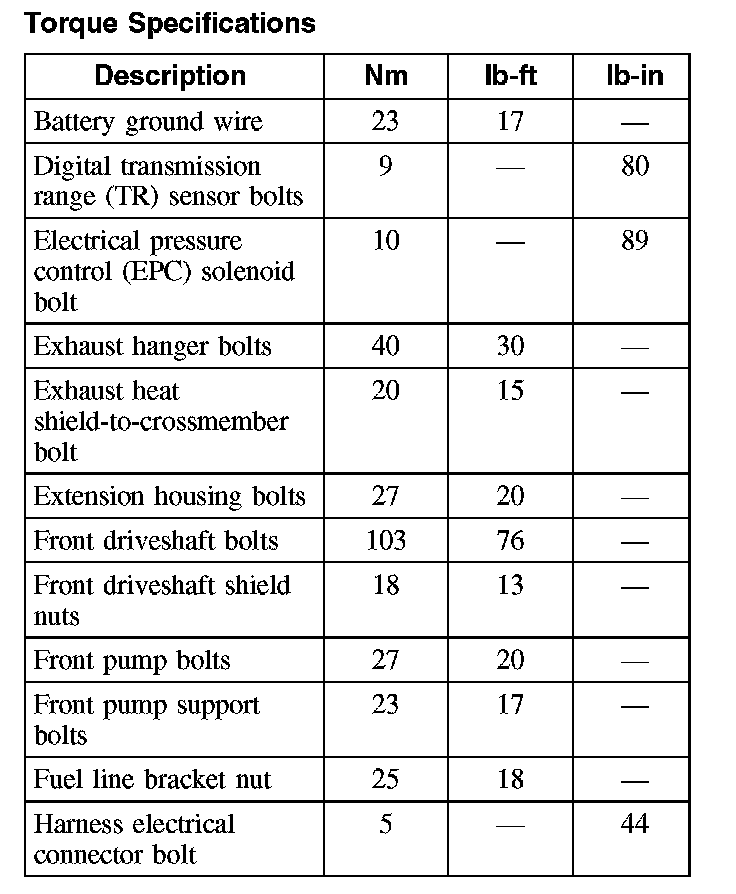 Torque Specifications