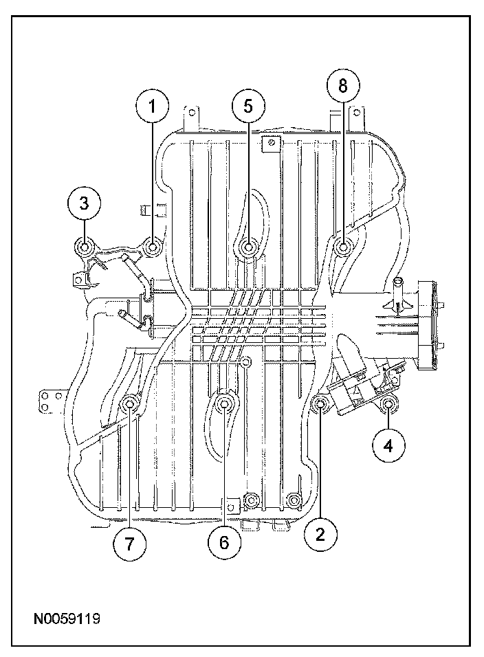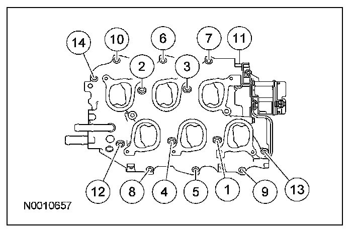 Upper Intake Manifold BoltsFirst pass 6 Nm (53 lb-in).