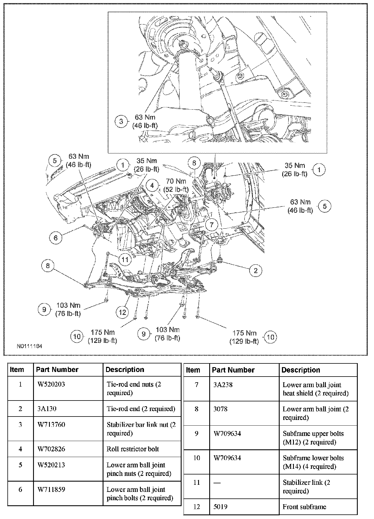 13. WARNING: Do not reuse a tie rod-to-wheel knuckle nut. This can result in nut failure and loss of steering control. Failure to follow this instruction may result in serious injury to vehicle occupant(s).