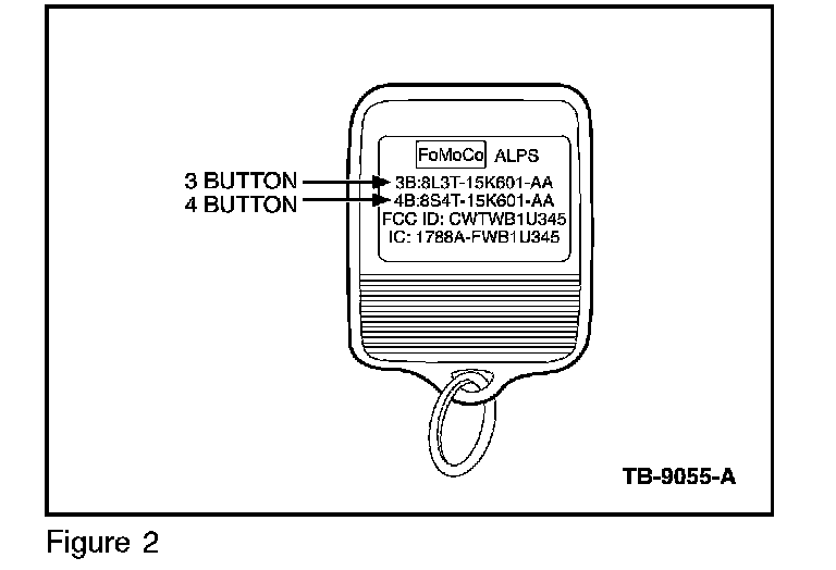 2. Is the vehicle Key Fob part number 8L3T-15K601-AA (3 button) or 8S4T-15K601-AA (4 button)? (Figure 2)