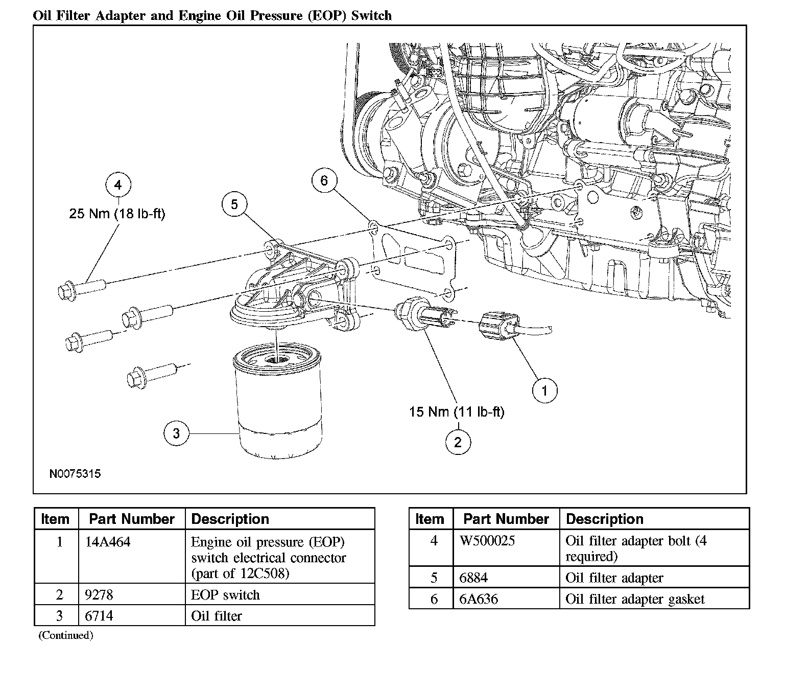 Oil Filter Adapter and Engine Oil Pressure (EOP) Switch