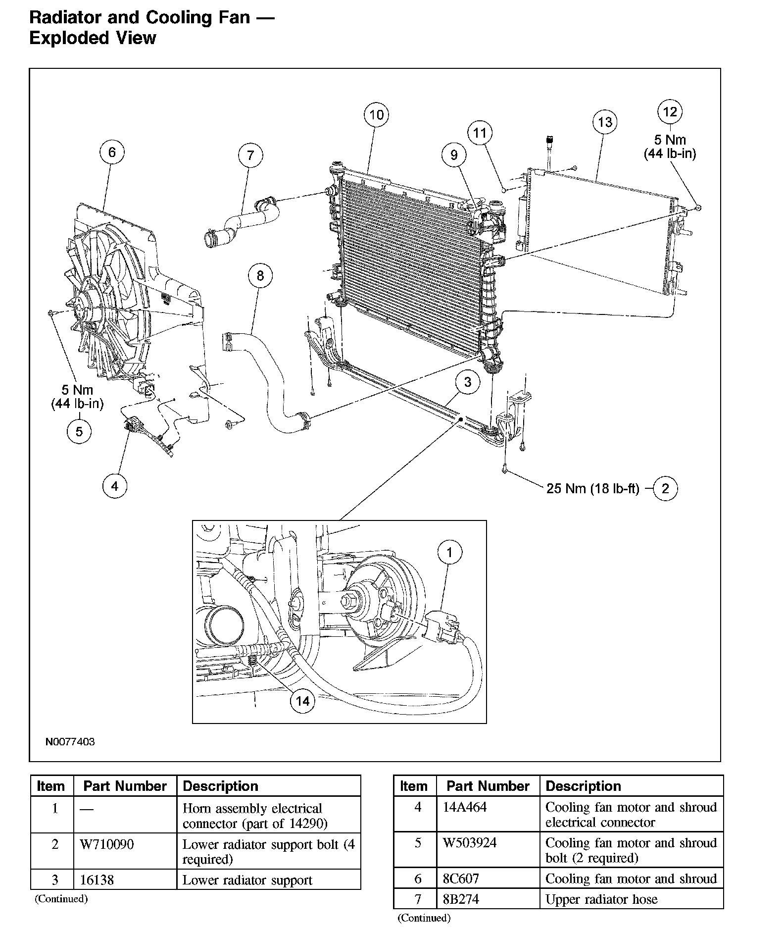 Radiator and Cooling Fan - Exploded View (Part 1):