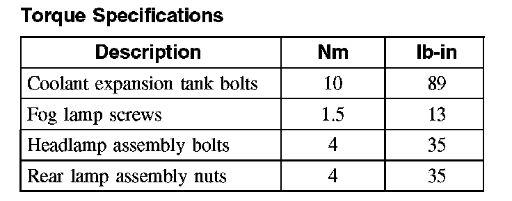 Torque Specifications: