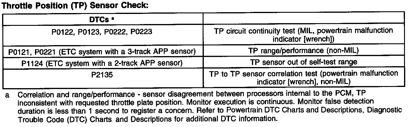 Throttle Position (TP) Sensor Check: