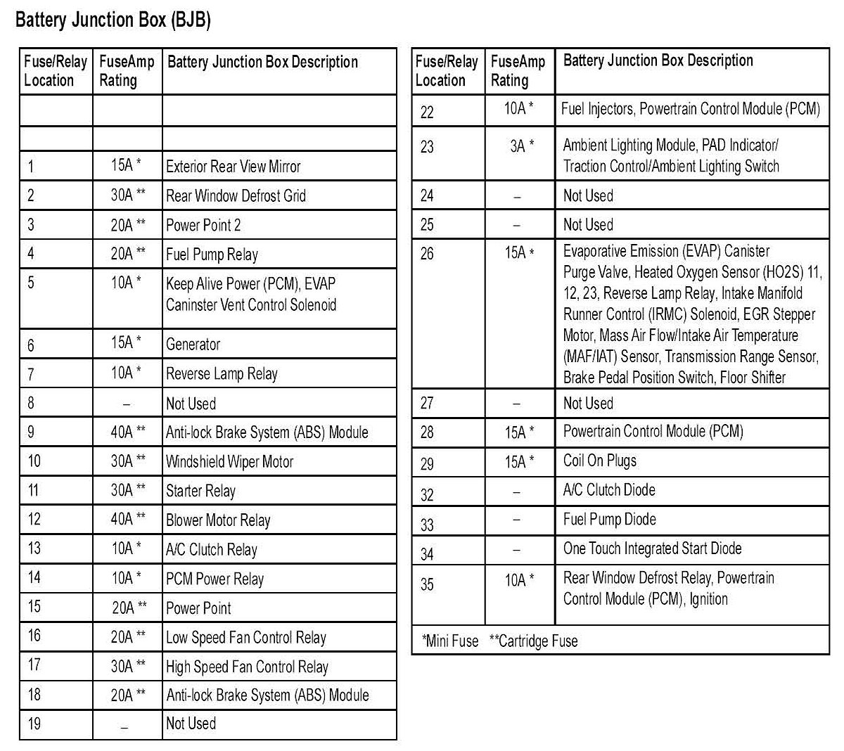 is located in the Battery Junction Box (BJB).