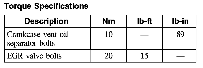 Torque Specifications: