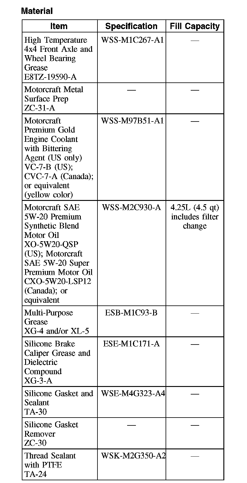 Capacity Specifications