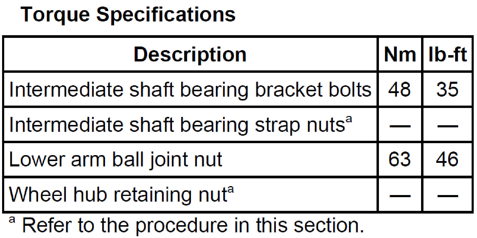 Torque Specifications