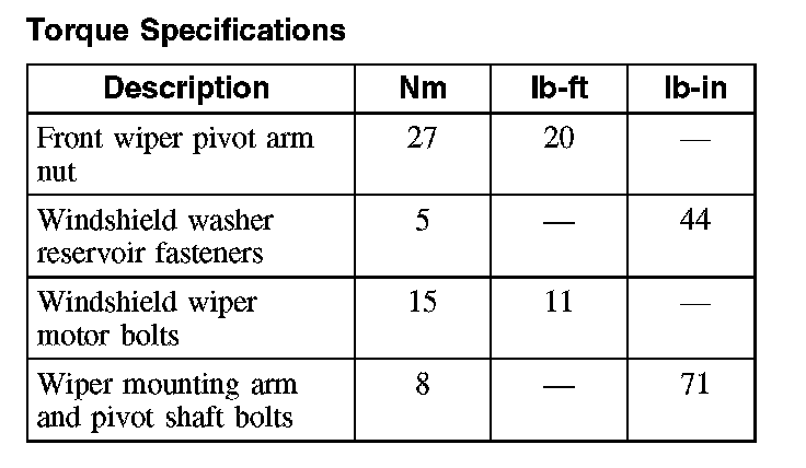 Torque Specifications: