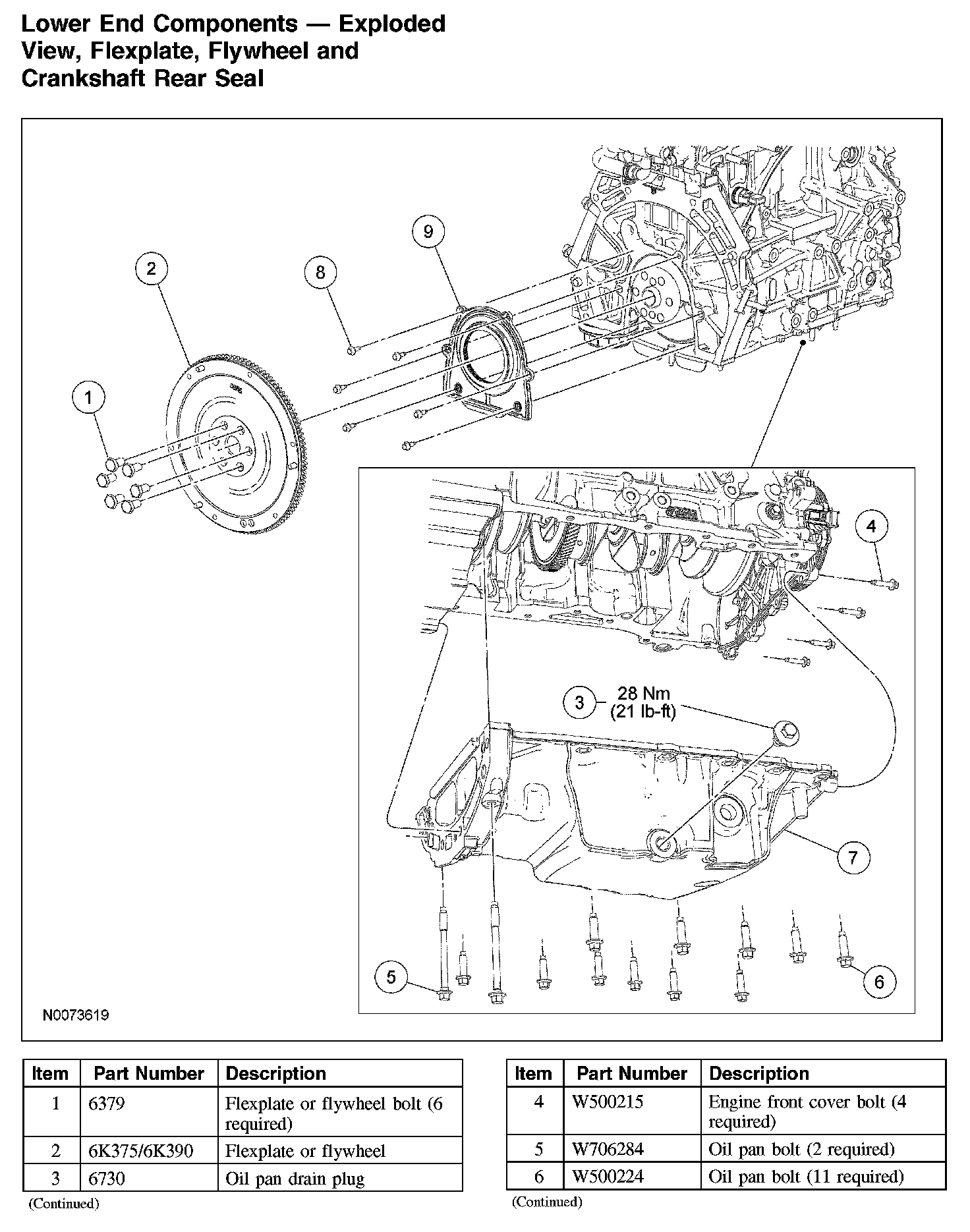 Lower End Components - Exploded View, Flexplate, Flywheel and Crankshaft Rear Seal (Part 2):