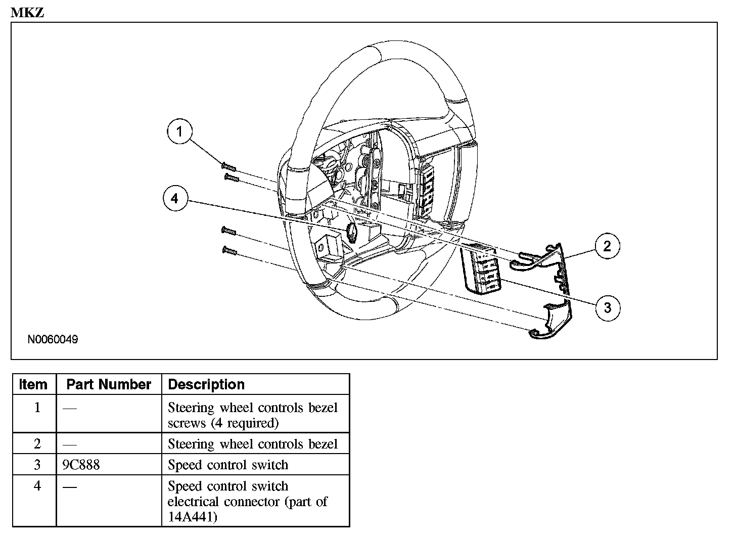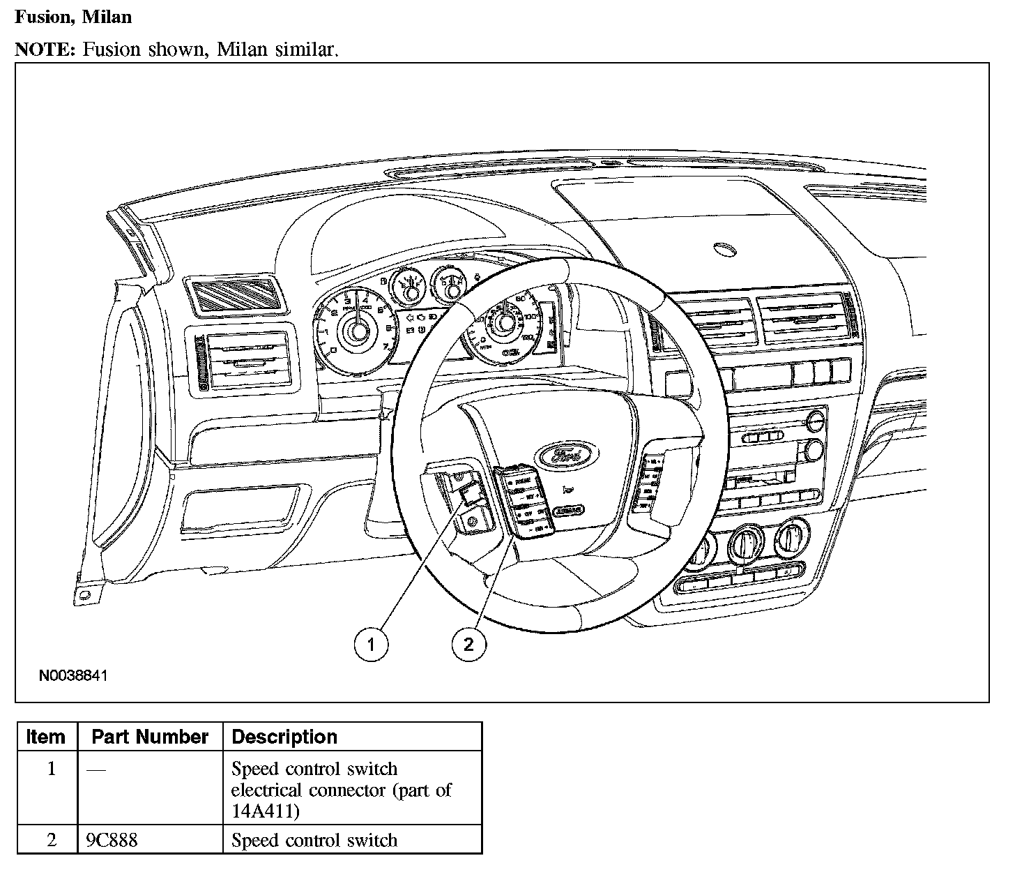 3. Remove the speed control switch by pulling the switch toward the rear of the vehicle.