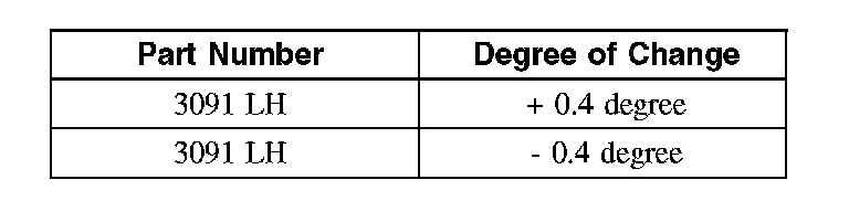 2. NOTE: The revised upper control arms have the same base part number but they are identified by the amount of caster they change (for example, + 0.4 degrees or - 0.4 degrees).