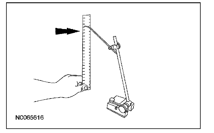 1. Measure the distance between the flat level surface and center of the lower arm inboard cam bolt (measurement A).