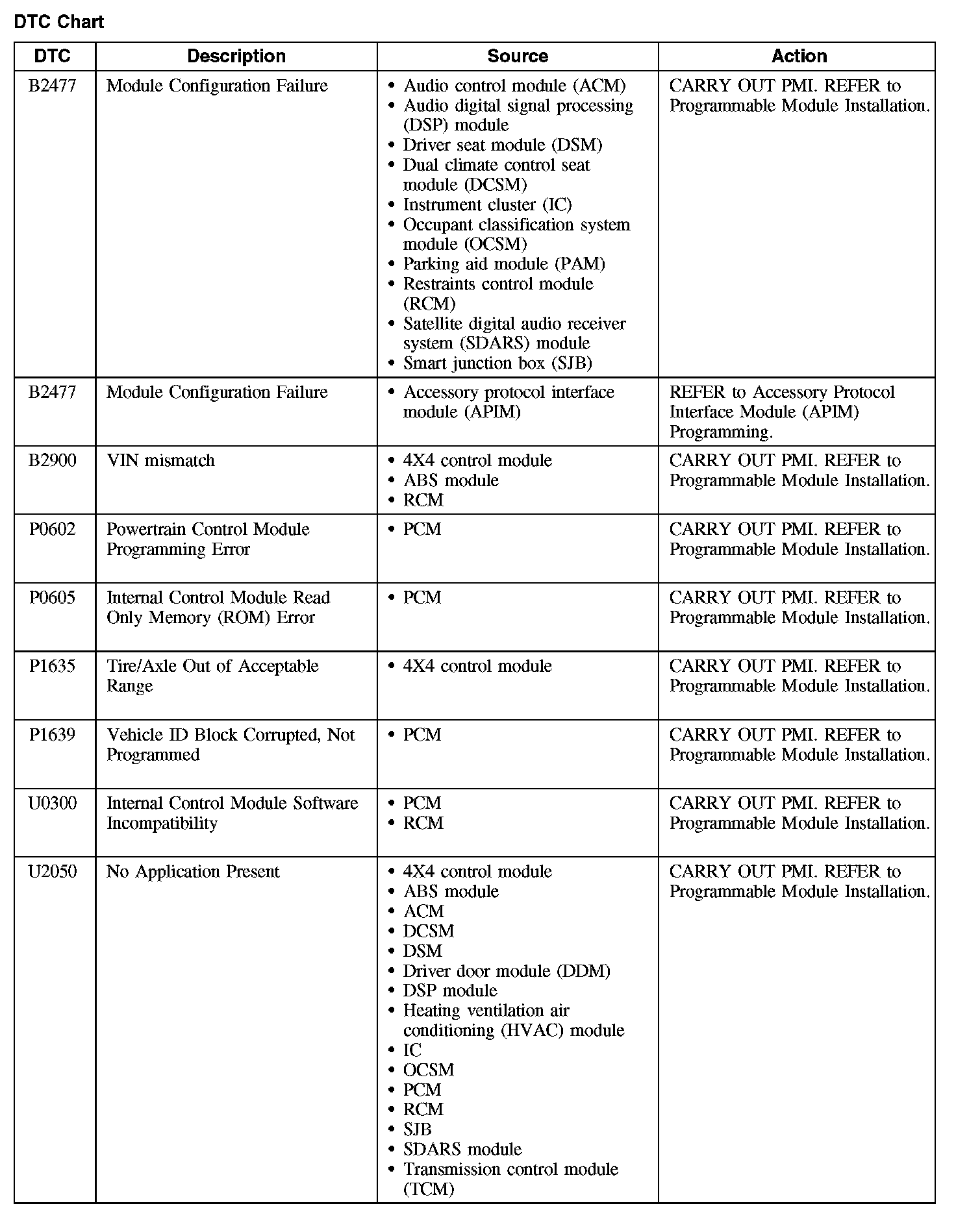 B2477-B2900 / P0602-P1639 / U0300-U2050: