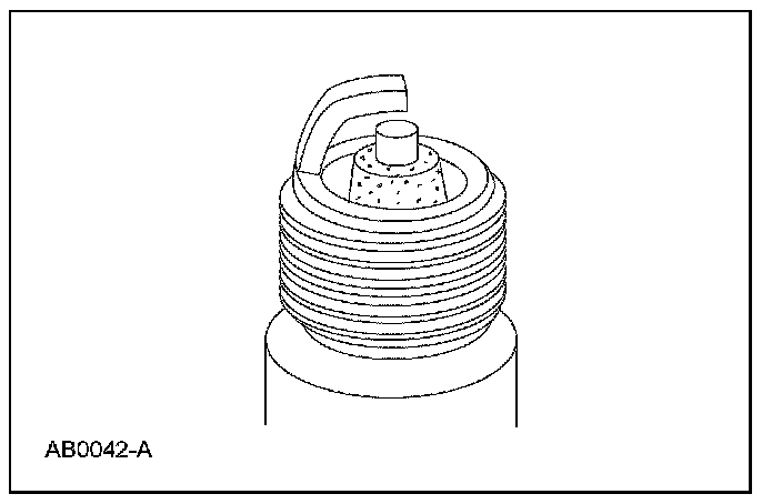 3. Inspect for carbon fouling. Look for black, dry, fluffy carbon deposits on the insulator tips, exposed shell surfaces and electrodes, caused by a spark plug with an incorrect heat range, dirty air cleaner, too rich a fuel mixture or excessive idling.