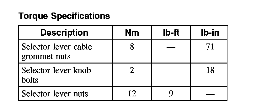 Torque Specifications:
