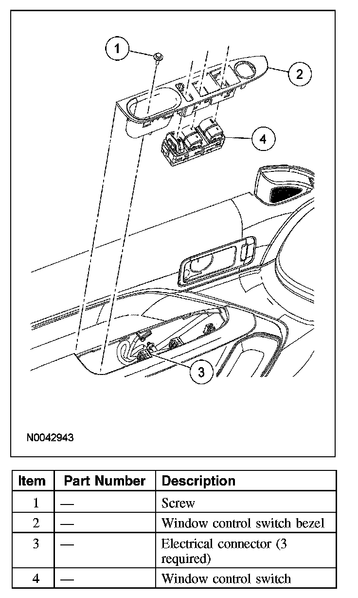 1. Remove the window regulator control switch bezel.
