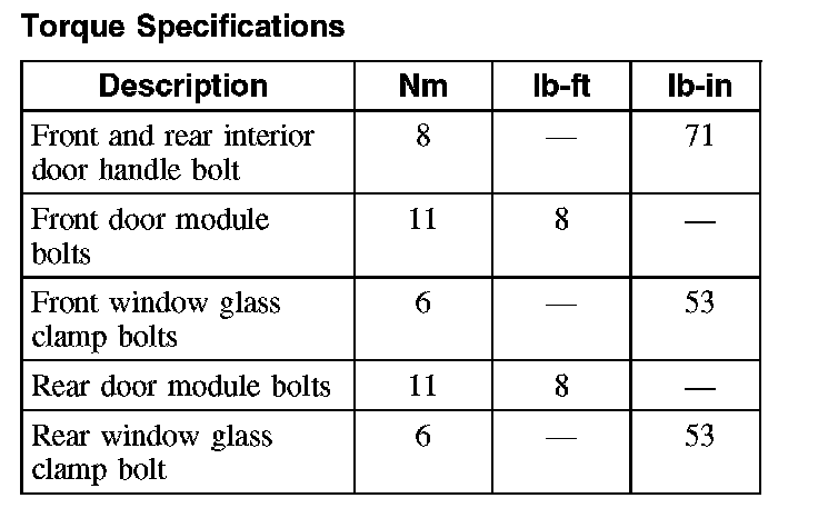 Torque Specifications: