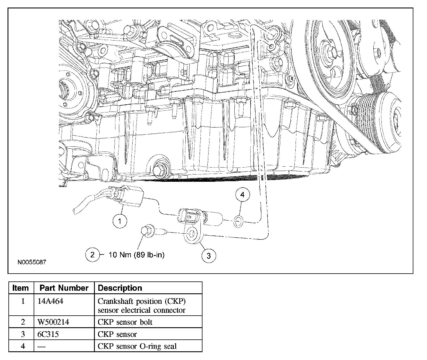 4. NOTE: Lubricate the CKP O-ring seal with clean engine oil.