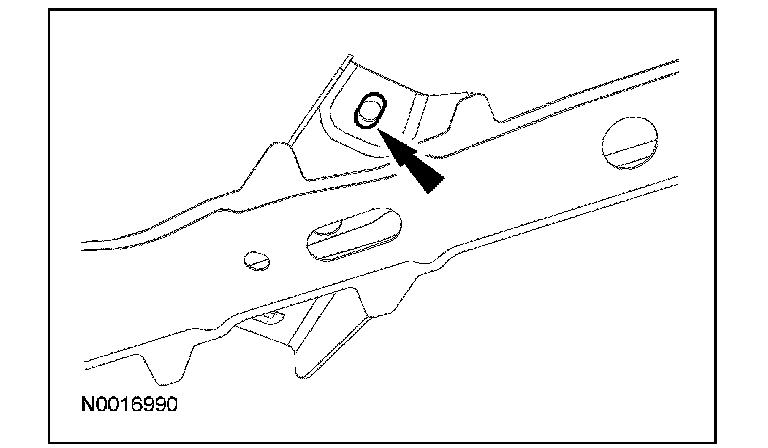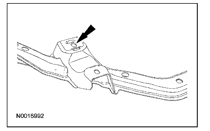 Using a suitable grinding tool, elongate the lower control arm rear outboard mounting hole as indicated by the etchings in the subframe