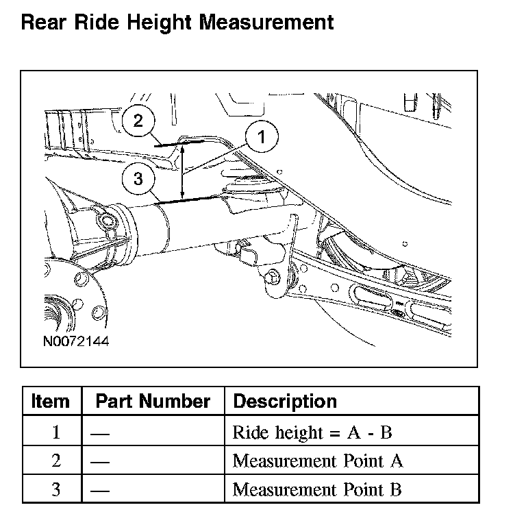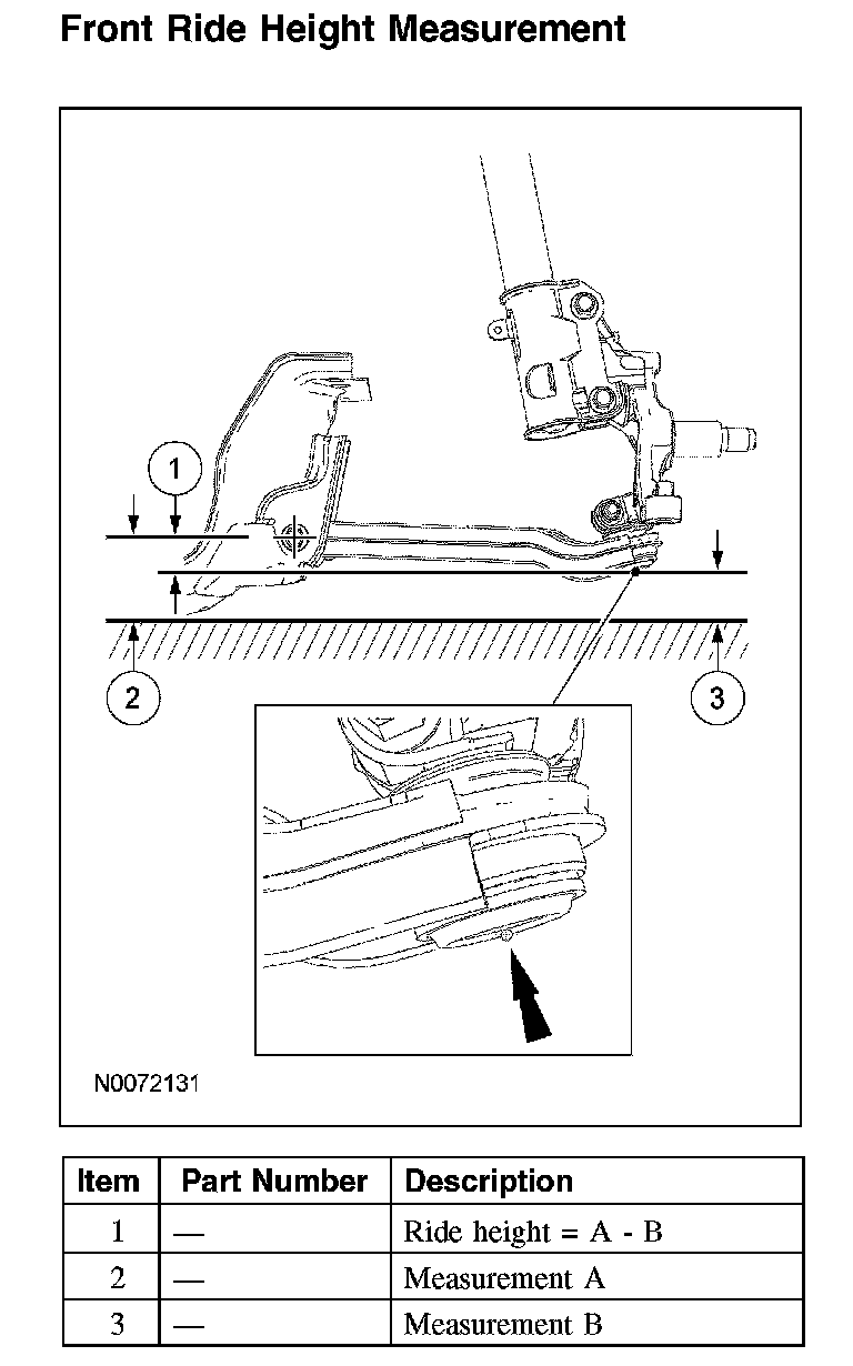 Home >> Ford >> 2008 >> Mustang V8-4.6L >> Repair and Diagnosis >> Maintenance >> Alignment >> Service and Repair >> Ride Height Measurement