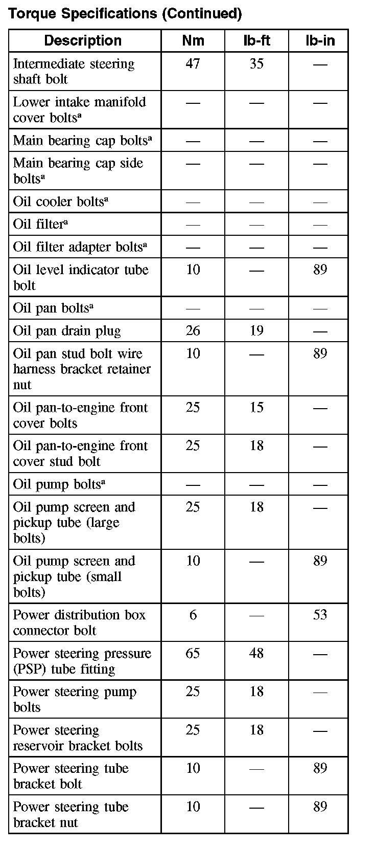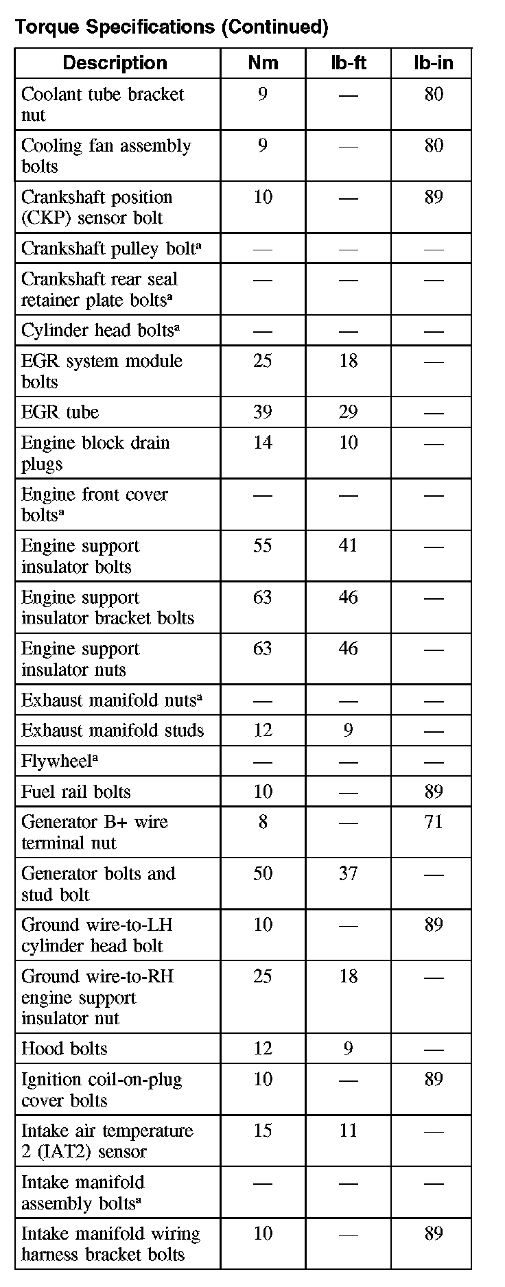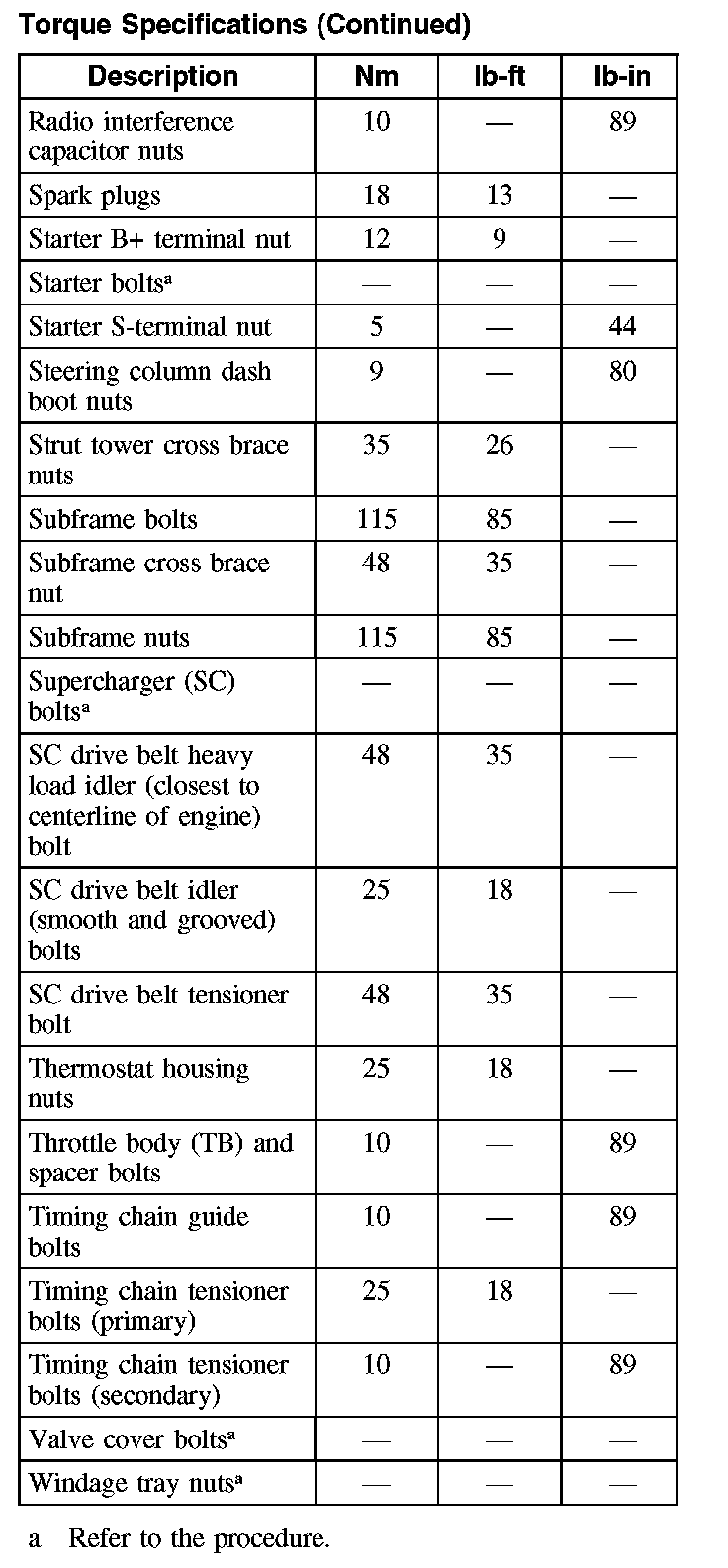 Torque Specifications