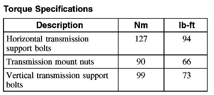 Torque Specifications: