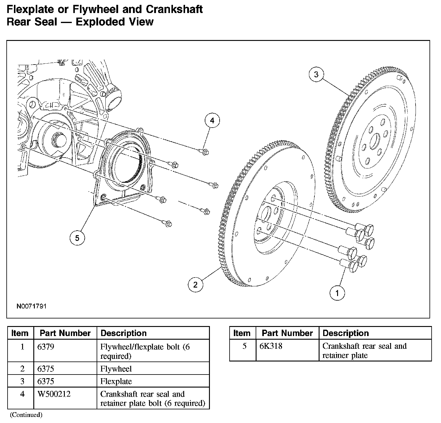 Flexplate or Flywheel and Crankshaft Rear Seal - Exploded View: