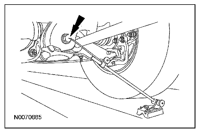 1. To obtain rear ride height, measure the distance between points A and B. For additional information, refer to Specifications.