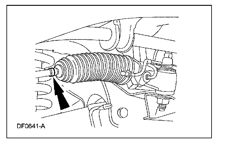 6. CAUTION: Do not allow the steering gear bellows to twist when the front wheel spindle tie rod is rotated or damage to the bellows may occur.