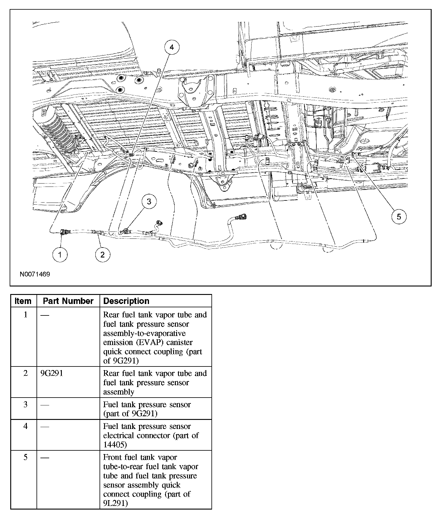 3. NOTE: The rear fuel tank vapor tube and fuel tank pressure sensor are an assembly and must be serviced as an assembly.