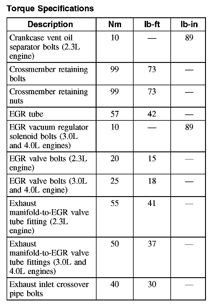 Torque Specifications: