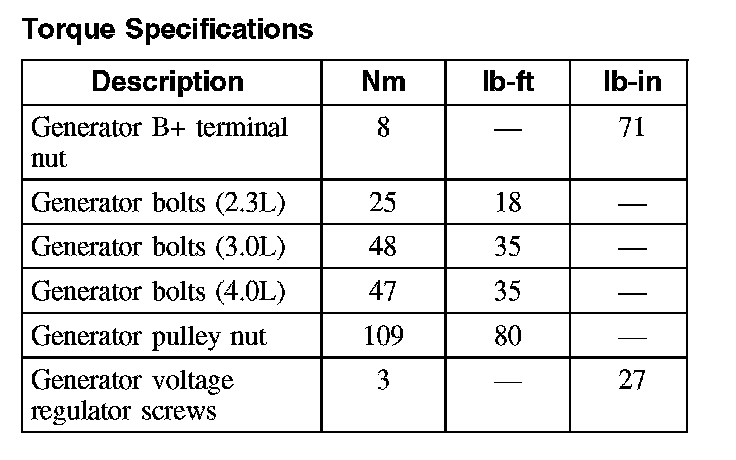 Torque Specifications: