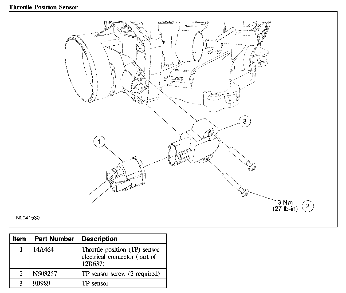 - When installing the new TP sensor, make sure that the radial locator tab on the TP sensor is aligned with the radial locator hole on the throttle body (TB).