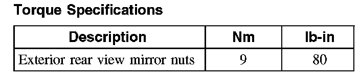 Torque Specifications: