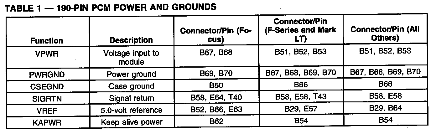 The PWR GND circuit(s) is directly connected to the battery negative terminal. PWR GND provides a return path for the PCM vehicle power (VPWR) circuits.