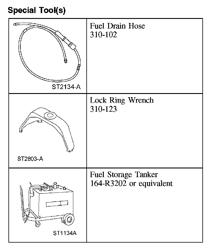 - When handling fuel, always observe fuel handling precautions and be prepared in the event of fuel spillage. Spilled fuel may be ignited by hot vehicle components or other ignition sources. Failure to follow these instructions may result in serious personal injury.