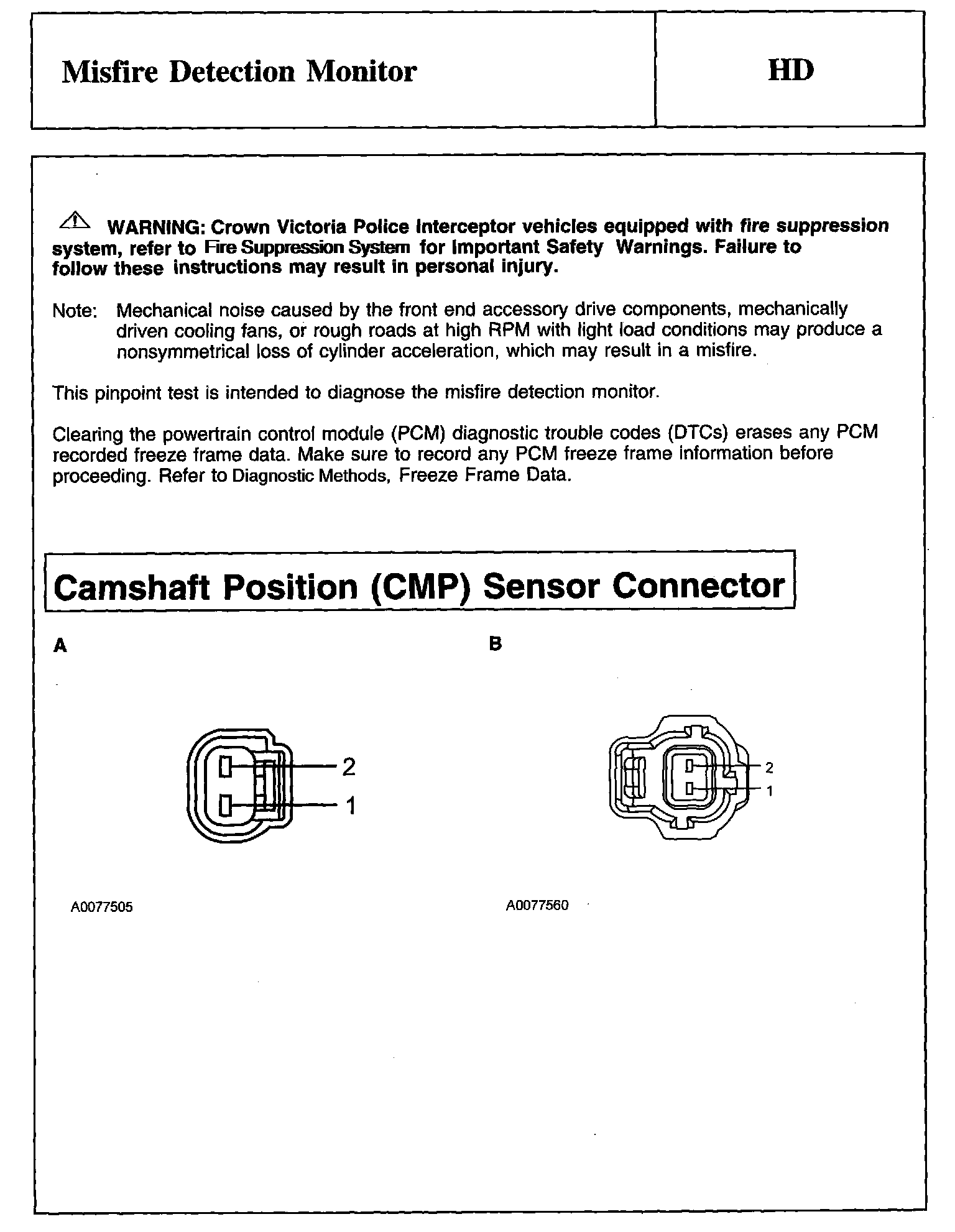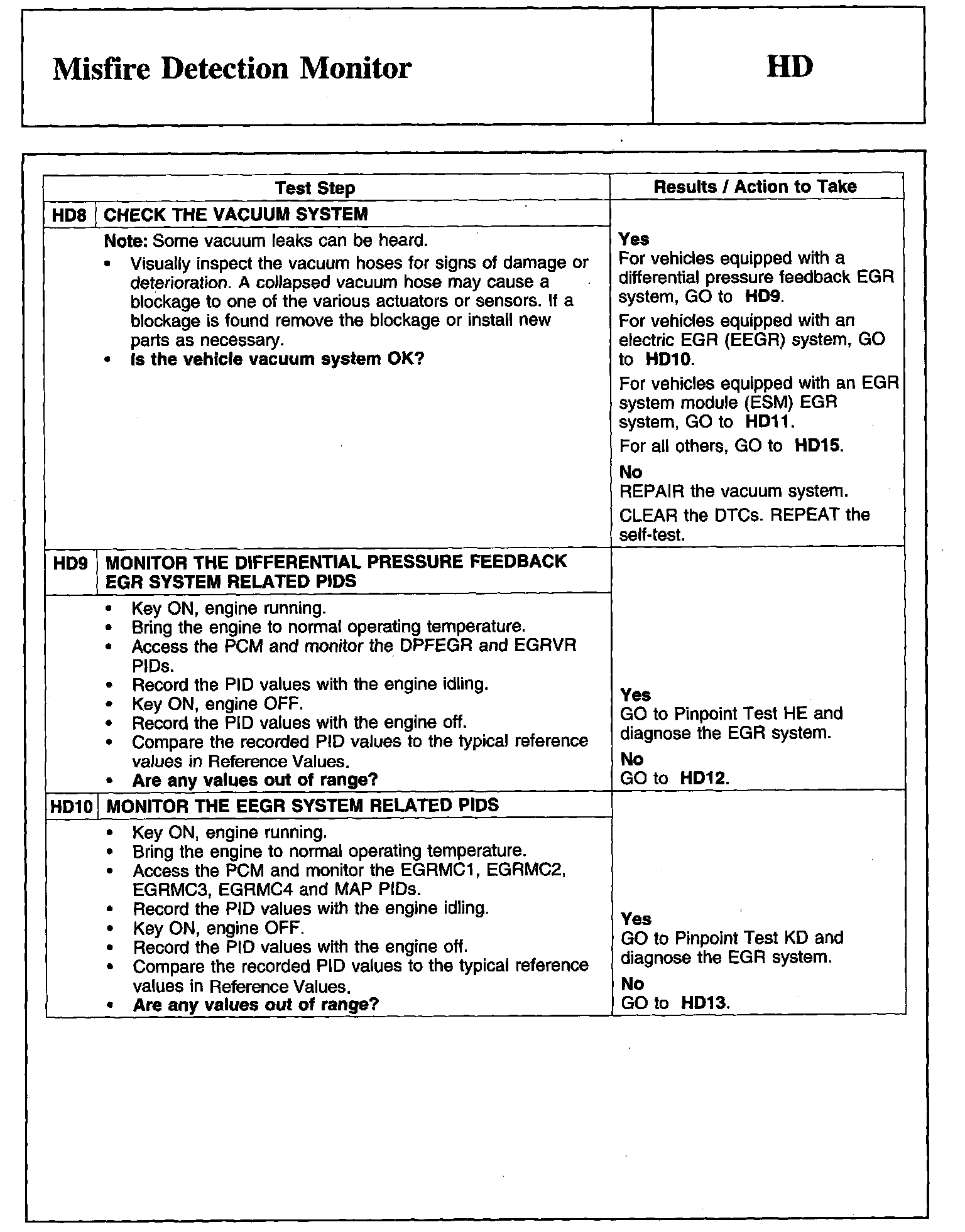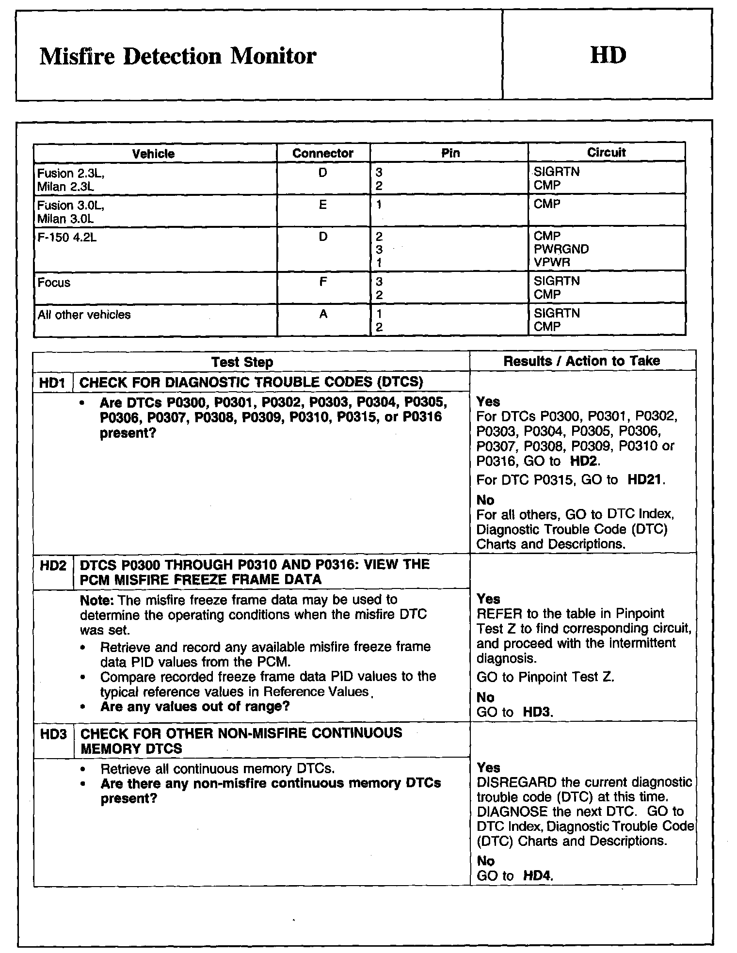 Home >> Ford >> 2008 >> Taurus FWD V6-3.5L >> Repair and Diagnosis >> Powertrain Management >> Computers and Control Systems >> Testing and Inspection >> Pinpoint Tests >> Tests HD: Misfire Detection Monitor