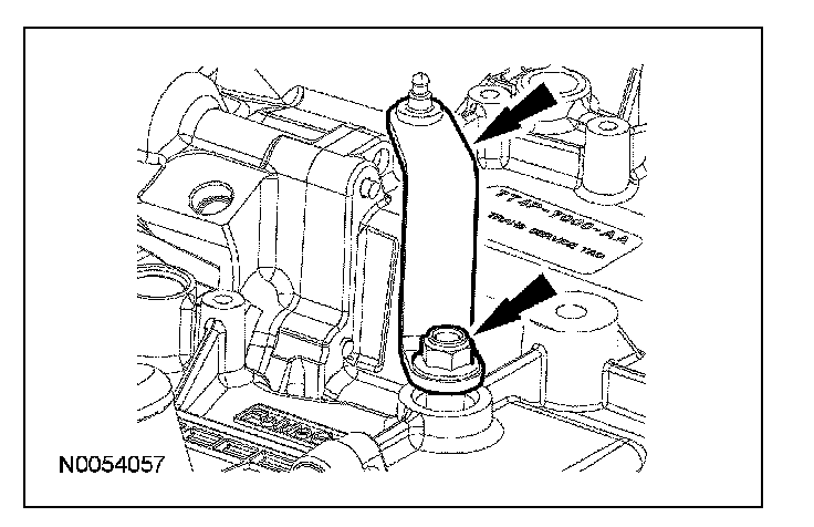 10. Remove the nut, rotate the transmission fluid filler tube counterclockwise 90 degrees and remove the transmission fluid filler tube.